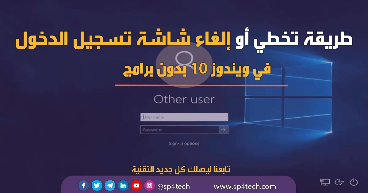 كيف تتخطي شاشة تسجيل الدخول في ويندوز 10 والدخول الي الويندوز مباشرة