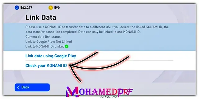 كيفية استرجاع حسابك عن طريق آيدي كونامي و جوجل بلاي قبل فتح اللعبة Konami Id Google Play Youtube