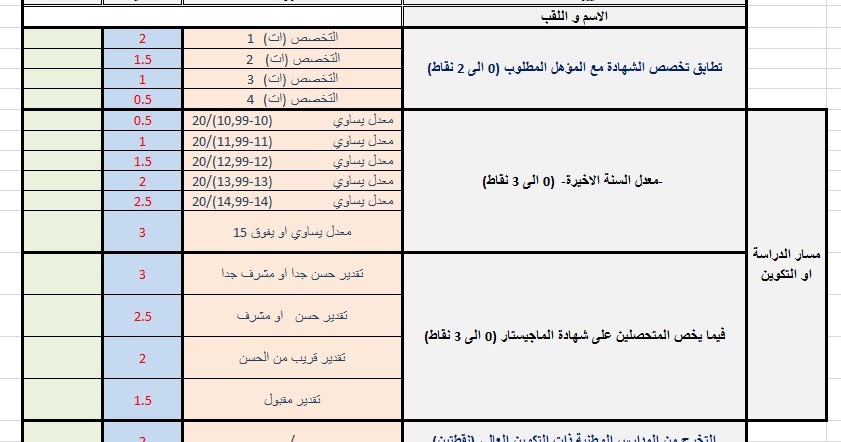 طريقة التنقيط في مسابقات التوظيف على اساس الشهادة