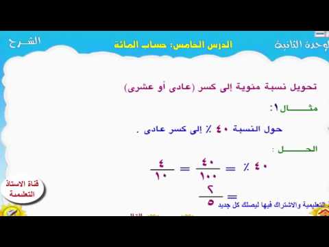 شرح درس حساب المائة النسبة المئوية الرياضيات الصف السادس الابتدائي نفهم
