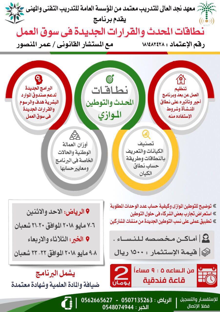 كافيه الشرقية Ar Twitter دورة نطاقات المحدث والقرارات الجديدة في سوق العمل التوطين الموازي وكيفية حساب النسب المستهدفة برامج دعم صندوق الموارد البشرية هدف العمل عن بعد و نظام أجير وتأثيره على نطاق المنشأة مع المستشار القانوني عمر المنصور للتسجيل