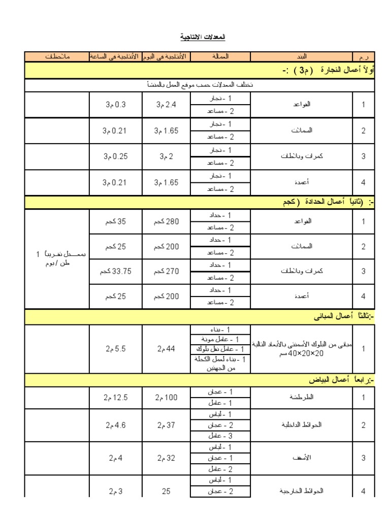 كتاب معدلات الاداء في أعمال مقاولات المباني Pdf