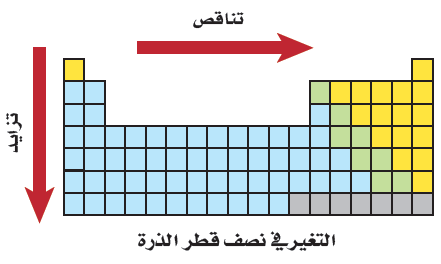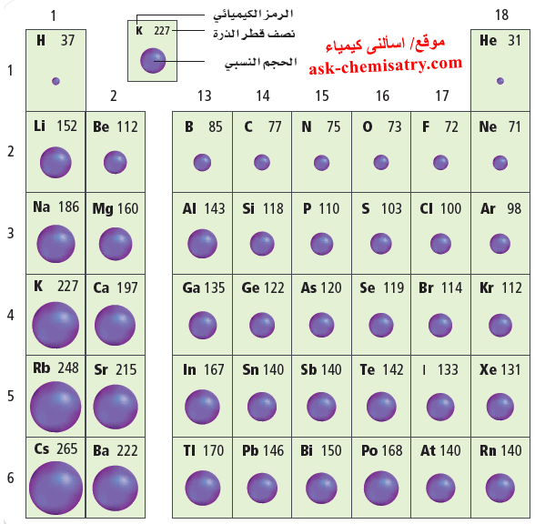 اشرح تدرج نصف قطر الذرة فى الدورات والمجموعات فى الجدول الدوري اسألني كيمياء